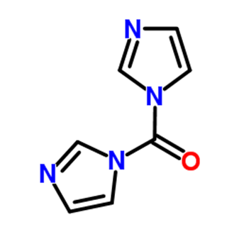N,N′-羰基二咪唑(簡稱CDI)是咪唑的衍生物,其咪唑結(jié)構(gòu)中具有一個閉合的大P鍵,且其中一個氮原子未成鍵的sp2軌道上有一對孤對電子。這些決定了CDI具有較強(qiáng)的化Chemicalbook學(xué)反應(yīng)活性,能與氨、醇、酸等官能團(tuán)反應(yīng),合成許多用一般化學(xué)方法難以得到的化合物。廣泛用作酶和蛋白質(zhì)粘合劑,抗生素類合成藥物中間體,特別是作為合成多肽化合物的鍵合劑。